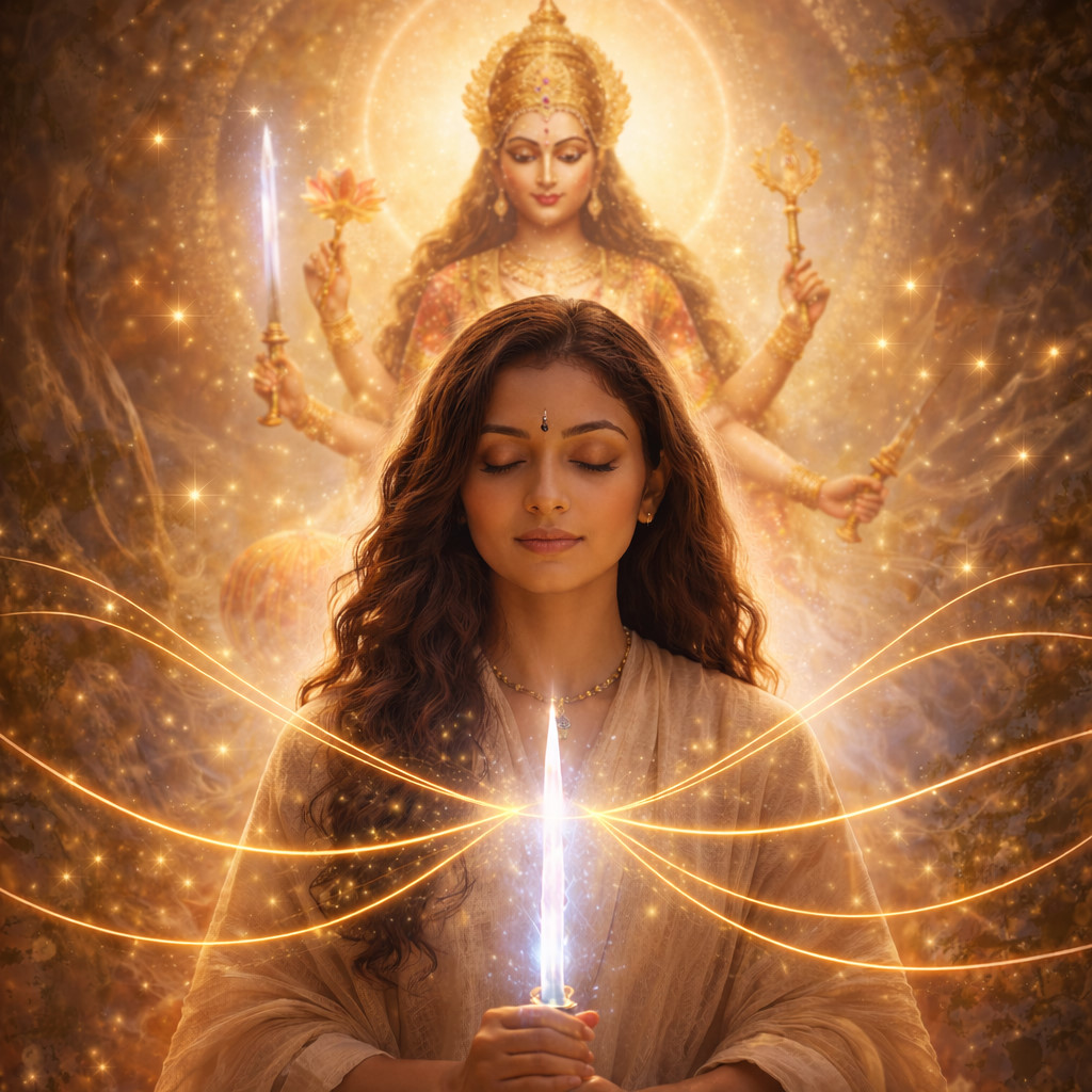 As the meditation unfolds, Vrushali calls upon divine feminine energy, invoking the presence of the Divine Mother in her many aspects. This invocation is not symbolic, but intentional, creating a protective and transformative energetic container for the work ahead.
